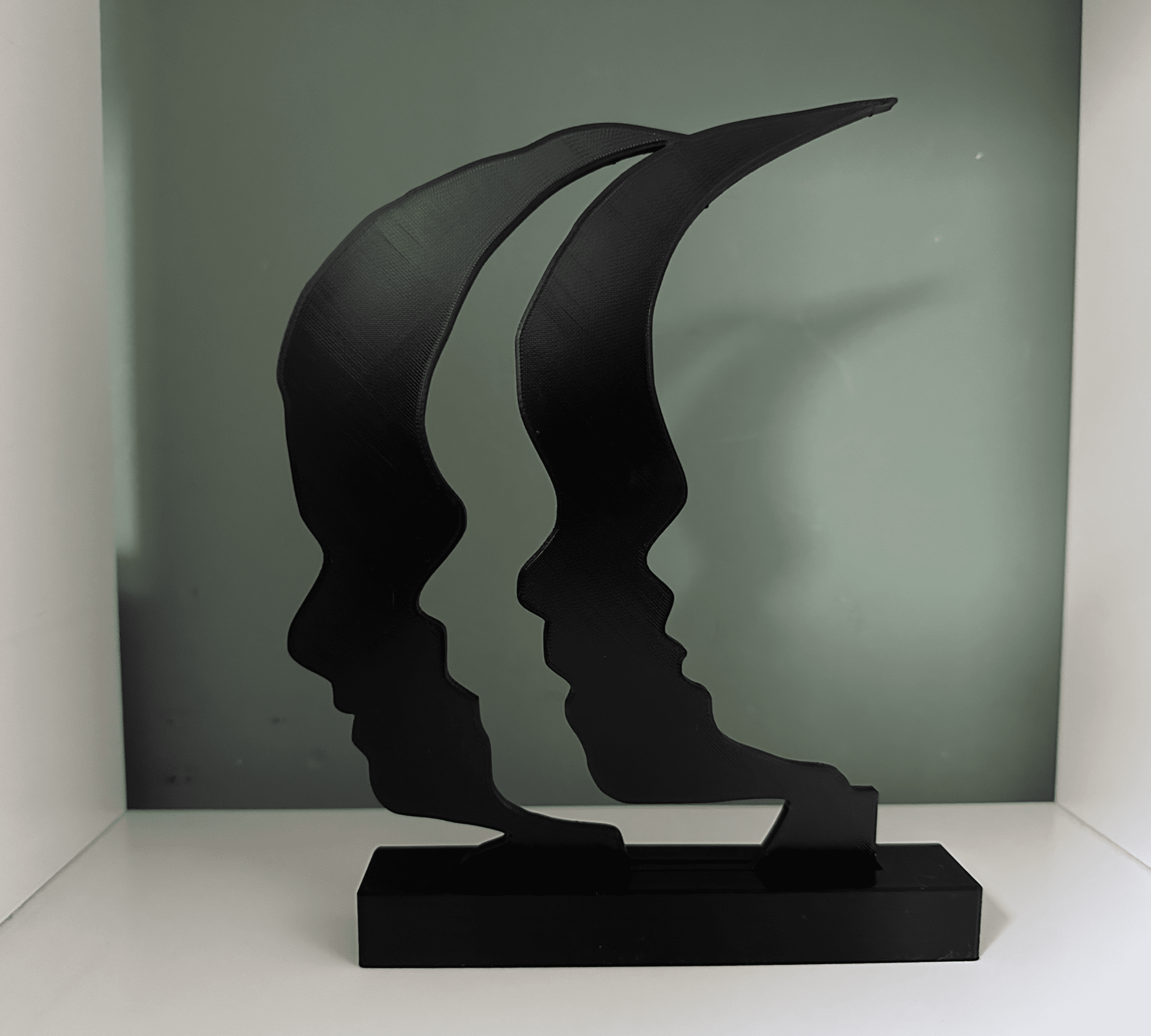 Het silhouet en de standaard worden gemaakt van PLA. De standaard wordt in principe in dezelfde kleur gemaakt als het silhouet, mocht je hier een andere kleur voor willen dan dien je dit even aan te vinken bij het selecteren van de kleur.