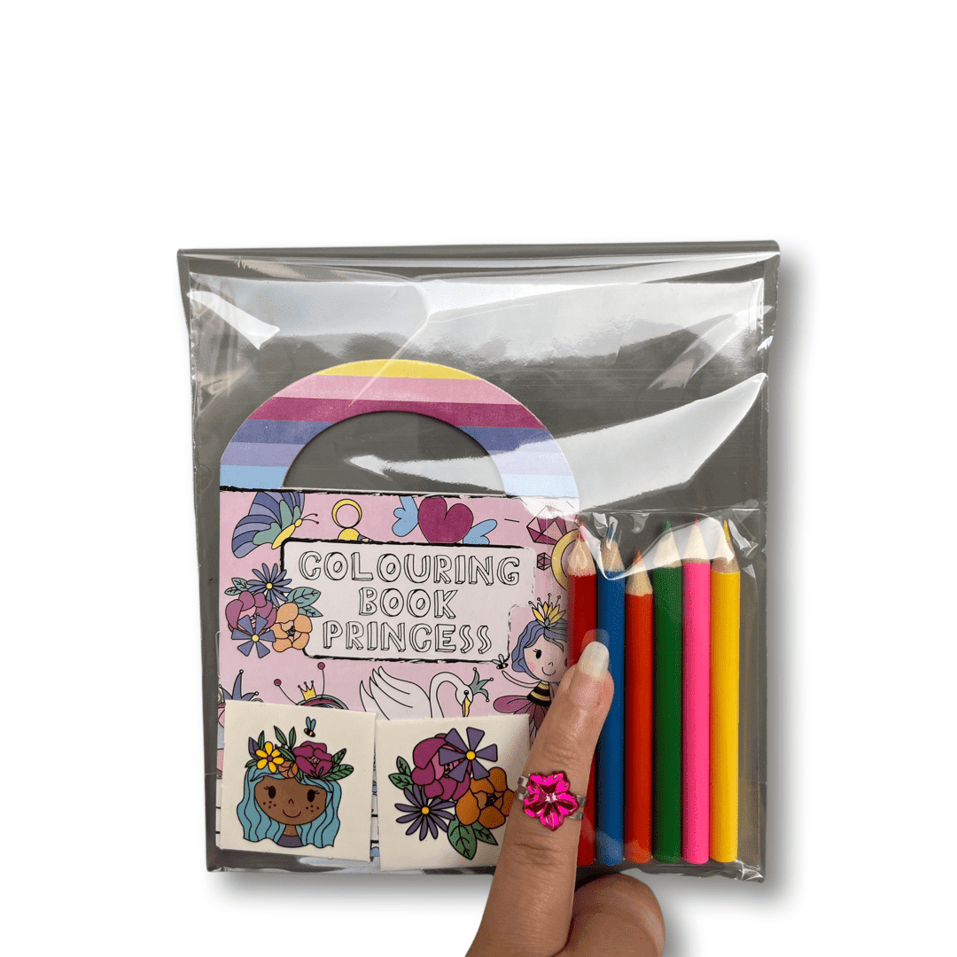 - Compleet: bestaande uit een kleurboekje, potloodjes of wasco, 2 stuks tattoo en een speeltje ( ring )